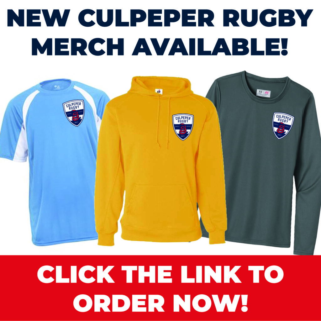 2026 Team Gear Now Available! Show your club pride! Official Culpeper Rugby apparel for the 2026 season – jerseys, hoodies, tees, hats, and more. Order early to get your size in time for spring.